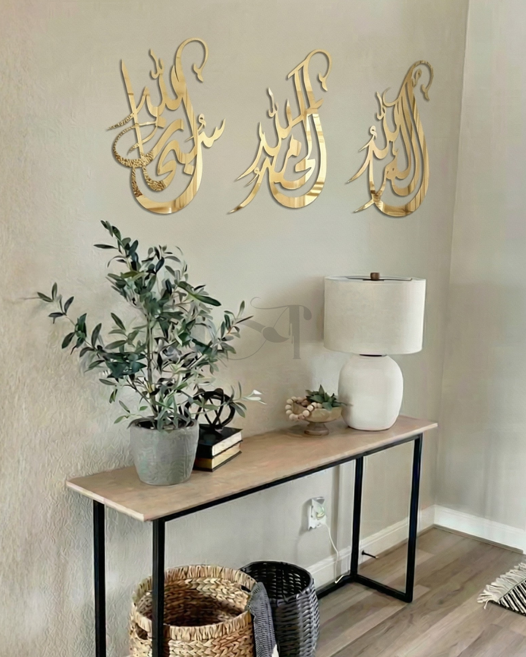 A refined Islamic wall art celebrating the greatness of remembrance and the beauty of Arabic calligraphy. Featuring three timeless phrases: Subhan Allah, Alhamdulillah, Allahu Akbar. Designed with a balanced artistic style that brings a sense of serenity, spirituality, and a luxurious presence to any space.
