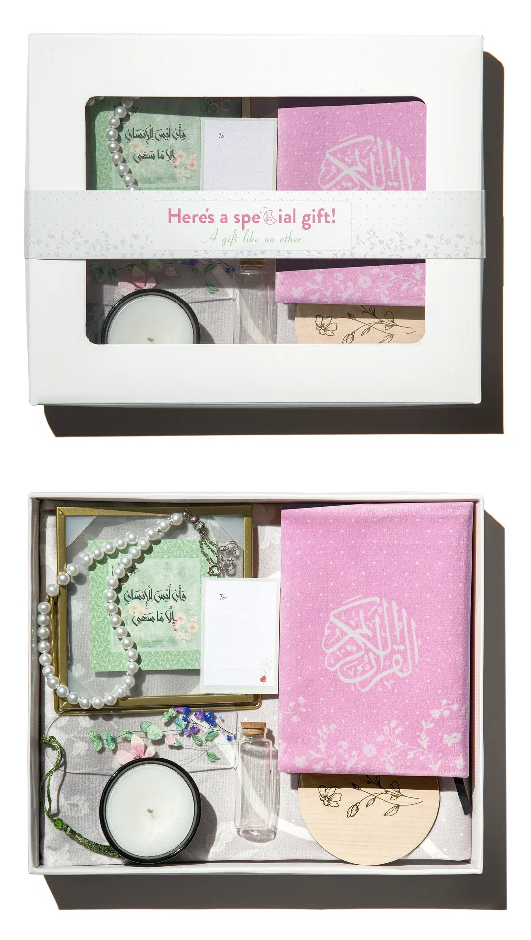 صندوق هدايا إسلامي مزين بزهور دانتيل من أوربان راغز، مصمم بإتقان بنقوش زهرية أنيقة، ومليء بمستلزمات إسلامية مختارة بعناية. مثالي لأي روتين إسلامي يومي، وهو هدية مثالية لرمضان، والعيد، وحفلات الزفاف، أو للاستخدام الشخصي. هذا الصندوق المدروس هو طريقة رائعة للاحتفال بالإيمان وإظهار الحب والتقدير.